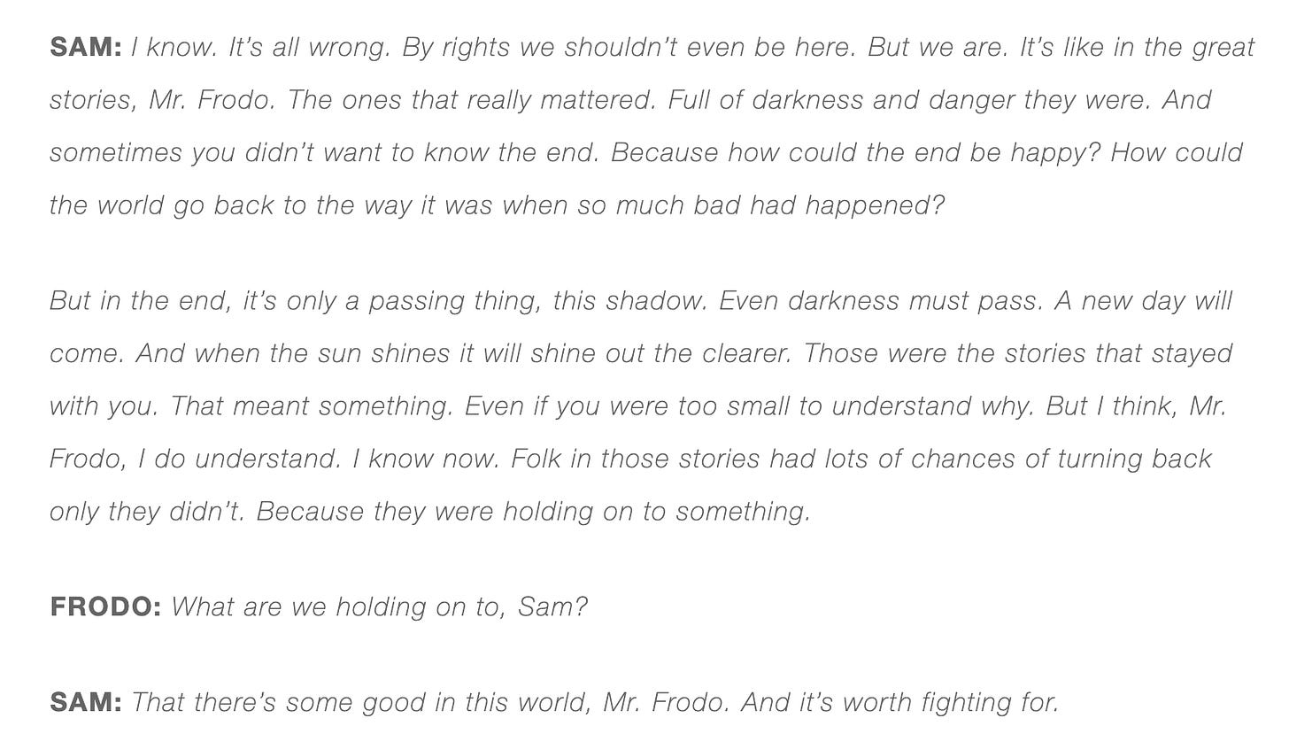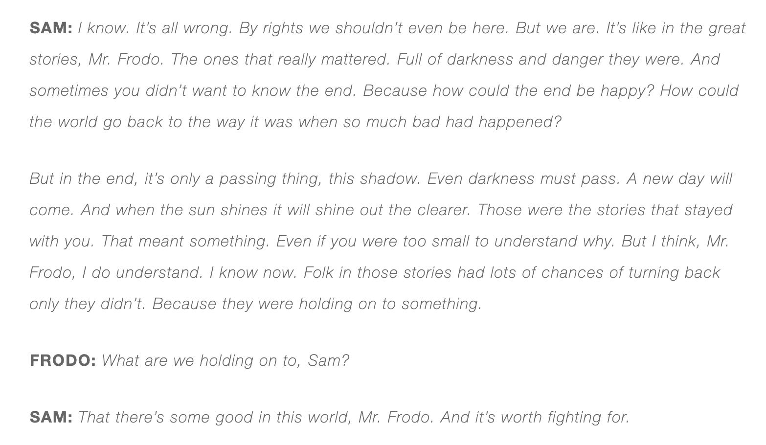 Why, why, why? Why am I a biofoid? There are many answers to this. One of them is that I could not “hack” my brain to care about crypto trading, even if I wanted to. I have been always interested in two topics: biology and something that can be approximated as “culture and society”, but never in crypto or trading. That might make me inferior in the eyes of some, but I cannot change who I am, even if I wanted to. I am, unfortunately, a biofoid… The answer also lies in the following interaction from The Lord of the Rings, one that I have read repeatedly in the last months of torment to remind me I might have a use in this world.