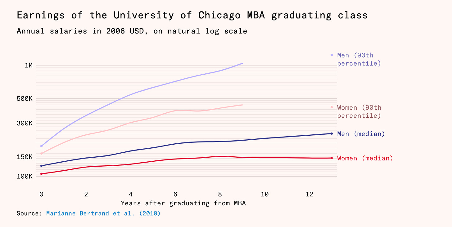 Pharmacists used to formulate medicines on a person-by-person basis and to have much more authority. Now, their role is much more limited and seemingly less creative. Her solution is to basically turn more of the greedy careers into something resembling pharmacy. That seems not only impossible (how can you make being a CEO less “greedy”?) but also… undesirable? It’s a solution that looks good on paper (yay women earn well in this profession and also kinda the same as men!), but not in practice. Is the work interesting? Is it at the forefront of innovation? Meaning in one’s career does not come from comparing one’s salary to their male’s colleagues’ salary and being satisfied it’s the same… Meaning comes from having the time and space to dedicate yourself to your work, truly and exhaustively.